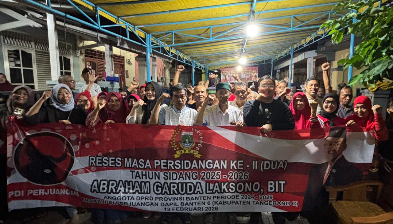 Anggota DPRD Provinsi Banten dari Fraksi PDI Perjuangan, Abraham Garuda Laksono, menyerap berbagai aspirasi warga dalam rangkaian reses Februari 2026 di Kabupaten Tangerang. (Foto: Ist) TANGERANG, SEPUTARBANTEN.ID — Anggota DPRD Provinsi Banten dari Fraksi PDI Perjuangan, Abraham Garuda Laksono, menyerap berbagai aspirasi warga dalam rangkaian reses Februari 2026 di Kabupaten Tangerang. Dalam pertemuan yang digelar di sejumlah titik itu, isu lapangan kerja dan pengawasan dana BOS menjadi sorotan utama masyarakat.